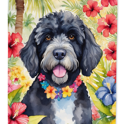 House Flag featuring breed specific Portuguese Water Dog artwork. Presenting our Heavy Duty Polyester House Size Decorative Sleeve Pole Flag, a vibrant addition to enhance the aesthetic appeal of your home. This large decorative flag, measuring approximately 28 x 40 inches, offers ample coverage and visibility. Each flag is meticulously sewn and made individually, ensuring a unique piece that may slightly vary in size. It’s a sleeve pole flag, designed to fit a standard decorative flag pole effortlessly. Please note that the flag pole and bracket are not included and should be purchased separately. What sets our flag apart is its dual-sided print. The design is mirrored on both sides of the fabric, allowing for uniform visibility regardless of the angle. Printed in full color, our flag showcases vibrant hues that truly stand out. To ensure lasting vibrancy and durability, the dyes are heat-set into the fabric. This ensures your flag remains bright and captivating through various weather conditions. Elevate the look of your home with our Heavy Duty Polyester House Size Decorative Sleeve Pole Flag!