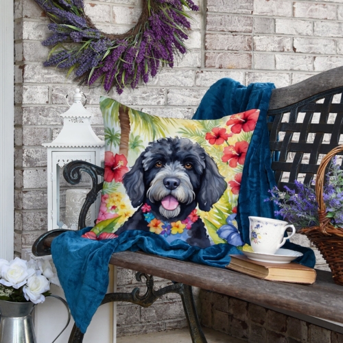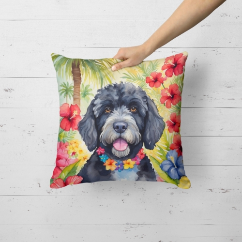 Throw Pillow featuring breed specific Portuguese Water Dog artwork. Revitalize your outdoor or indoor living space with Caroline’s Treasures 18×18 Fabric Decorative Pillow. With a generously sized dimension of approximately 18 inches by 18 inches, this pillow makes a comfortable and aesthetic addition to any seating area. Made from a unique, water-resistant material developed by Caroline’s Treasures, the pillow sham is 100% polyester fabric that’s durable and ready to weather any condition. Its vibrant, full-color artwork will not fade over time as it is dyed with color-fast dyes. Whether you place it on your patio furniture, porch, veranda, or indoor couch, its soft canvas fabric ensures a cozy experience. The pillow is handcrafted in the United States, featuring a sham created from three pieces of fabric and a polyester insert for enduring shape and overstuffed comfort. Despite being robustly built to endure the outdoors, it is as soft and snug as your favorite indoor cushions. Please note, as all our pillows are handmade, sizes may vary slightly, adding to the charm of this unique decorative item.
