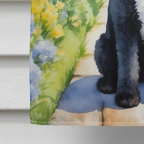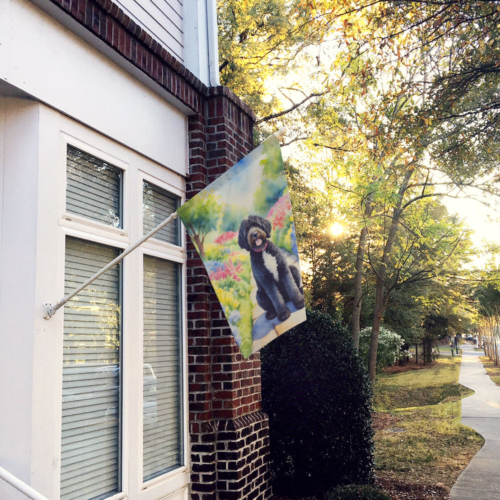 House Flag featuring breed specific Portuguese Water Dog artwork. Presenting our Heavy Duty Polyester House Size Decorative Sleeve Pole Flag, a vibrant addition to enhance the aesthetic appeal of your home. This large decorative flag, measuring approximately 28 x 40 inches, offers ample coverage and visibility. Each flag is meticulously sewn and made individually, ensuring a unique piece that may slightly vary in size. It’s a sleeve pole flag, designed to fit a standard decorative flag pole effortlessly. Please note that the flag pole and bracket are not included and should be purchased separately. What sets our flag apart is its dual-sided print. The design is mirrored on both sides of the fabric, allowing for uniform visibility regardless of the angle. Printed in full color, our flag showcases vibrant hues that truly stand out. To ensure lasting vibrancy and durability, the dyes are heat-set into the fabric. This ensures your flag remains bright and captivating through various weather conditions. Elevate the look of your home with our Heavy Duty Polyester House Size Decorative Sleeve Pole Flag!