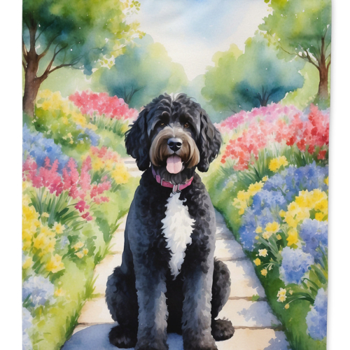 House Flag featuring breed specific Portuguese Water Dog artwork. Presenting our Heavy Duty Polyester House Size Decorative Sleeve Pole Flag, a vibrant addition to enhance the aesthetic appeal of your home. This large decorative flag, measuring approximately 28 x 40 inches, offers ample coverage and visibility. Each flag is meticulously sewn and made individually, ensuring a unique piece that may slightly vary in size. It’s a sleeve pole flag, designed to fit a standard decorative flag pole effortlessly. Please note that the flag pole and bracket are not included and should be purchased separately. What sets our flag apart is its dual-sided print. The design is mirrored on both sides of the fabric, allowing for uniform visibility regardless of the angle. Printed in full color, our flag showcases vibrant hues that truly stand out. To ensure lasting vibrancy and durability, the dyes are heat-set into the fabric. This ensures your flag remains bright and captivating through various weather conditions. Elevate the look of your home with our Heavy Duty Polyester House Size Decorative Sleeve Pole Flag!