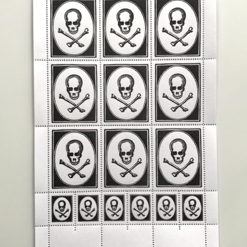 Fifteen gothic letterpress skull & bones stamps per 5.5 x 8.5″ sheet. These are great for Halloween or any time of the year – they are goth and goth is always cool. Packaged in an eco-friendly, vegetable-based cellulose protective sleeve with chipboard backing.