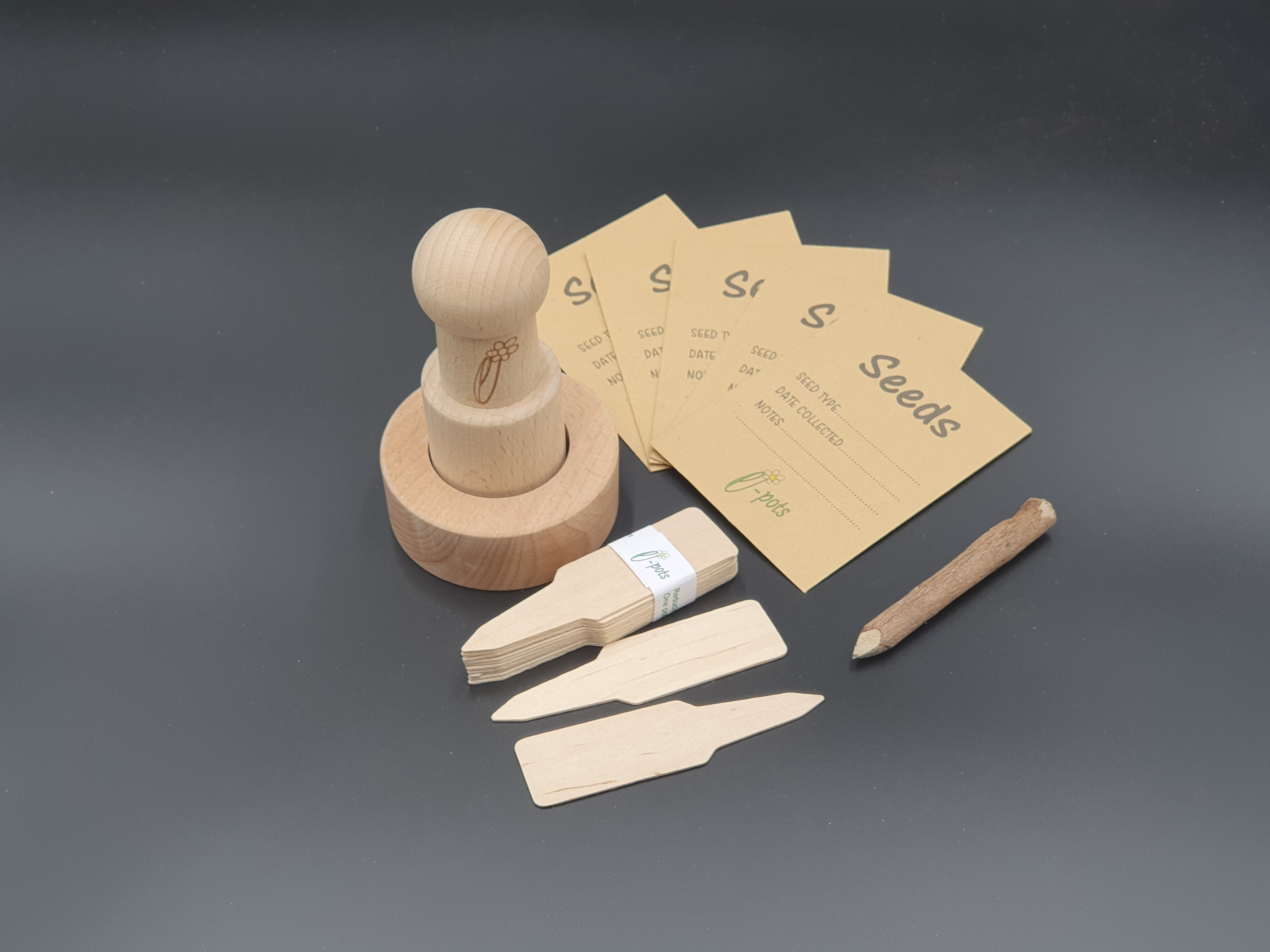 OUR GIFT SET CONTAINS the e-pots Classic Paper Pot Maker and also extra goodies to enhance the set. 10x wooden plant labels, 5x handcrafted seed envelopes and a handy tree twig pencil. Plus full instructions on how to craft amazing paper plant pots fast & easy