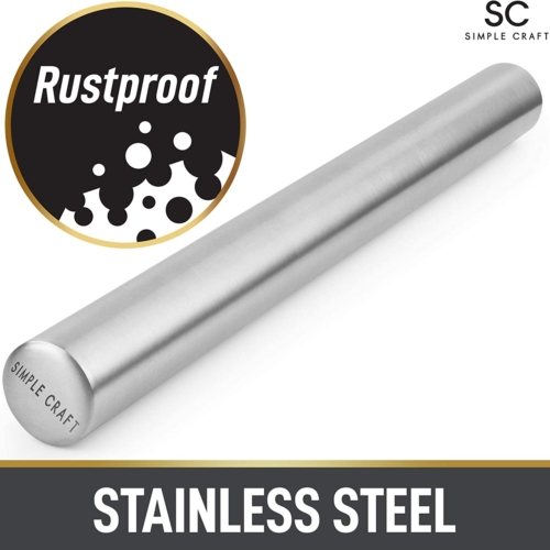 FRENCH CYLINDER PIN Shape and flatten dough easily with the Simple Craft Rolling Pin. Made of stainless steel with a highly polished & non-stick surface that is perfect for handling all types of dough, putting you in control to create precise thicknesses.