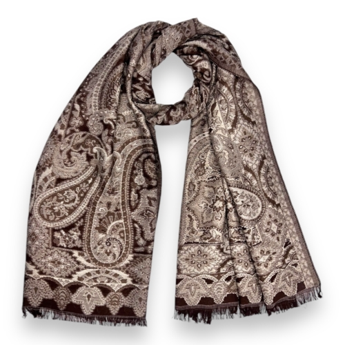 Premium Pash with paisley print finished with fringes on each end.