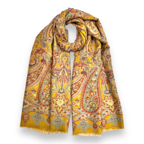 Premium pashmina with paisley print in mustard