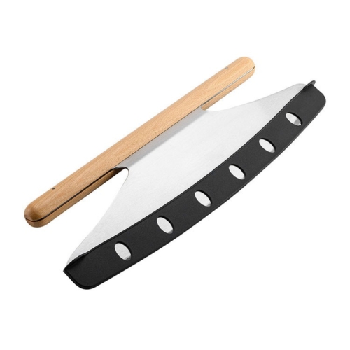 Improved Design wiht added space to hold perfectly.pizza cutter rocker with new design, double handle at two endsStainless steel pizza slicer pizza cutter rocker with protective coverMaterial: Stainless steel + wooden handleSize: 350x120mm Thickness: 1.0mm****************************************************************************Package Includes:Each pack Contains 1 Item based on your check out count of selection******************************************************************************