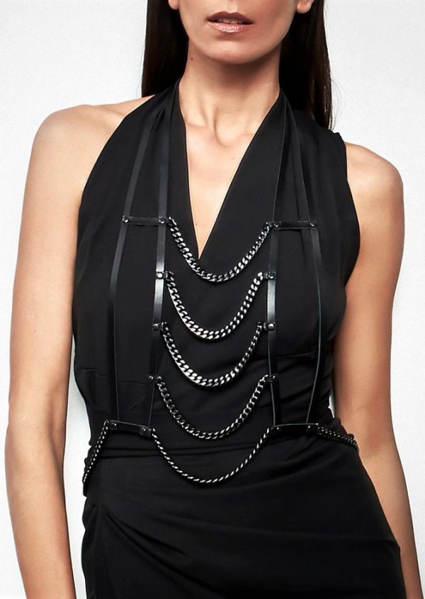 This accessory is perfect to wear alone or with clothes. You can give will to your imagination, because it can be worn on the front or on the back…just dare to wear! The smoked chain flashes softly and mystically and animates the leather of the necklace making it a real eye delight.
