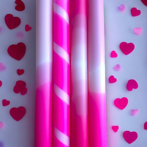 Show the one you love how much you care this Valentines day with this stunning set of dip dye candles in ‘Pucker up pink’. Or perhaps you are just a fan of pink and can’t resist a touch more in your home. Use as a full collection or pick and mix as you like, these are sure to make an impact to any dinner table. Sustainability packaged in recyclable boxes helping to make these an environmentally conscious recipient, very happy. Candles are sold as a set of 4. Each candle is a different design. Candles may vary slightly from picture as this is a handmade product.
