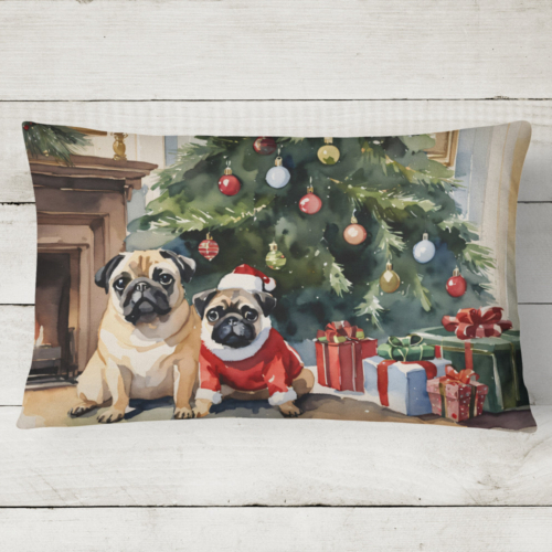 Throw Pillow featuring breed specific Pug artwork. Celebrate Christmas with this Christmas Pillow. Embrace the fusion of comfort and style with Caroline’s Treasures Fabric Decorative Pillow. This 12×16 inch outdoor pillow is designed to complement your patio furniture, adding a splash of color and artistry to your outdoor setting. Constructed with a 100% Polyester Fabric pillow sham filled with a plush pillow form, this cushion is as comfortable as it is durable. Our outdoor pillow utilizes a novel fabric, meticulously woven for enhanced water resistance. This soft canvas material is equally suited for your indoor couch as well as outdoor settings such as the patio, porch, or veranda. To ensure enduring vibrance, we employ colorfast dyes resistant to fading even when subjected to weather elements. The making of this pillow involves the delicate sewing together of three fabric pieces to create a sham, into which a polyester insert is carefully placed. The result is an overstuffed pillow that tenaciously holds its shape. With both the sham and the pillow insert crafted in the United States, these handmade pillows are a testament to superior local craftsmanship. Note that as these pillows are handmade, sizes may slightly vary, enhancing their unique appeal. Enjoy comfort in style with Caroline’s Treasures Fabric Decorative Pillow.
