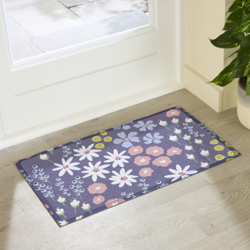 Purple Floral Pattern Indoor Outdoor Doormat (70 x 40cm)