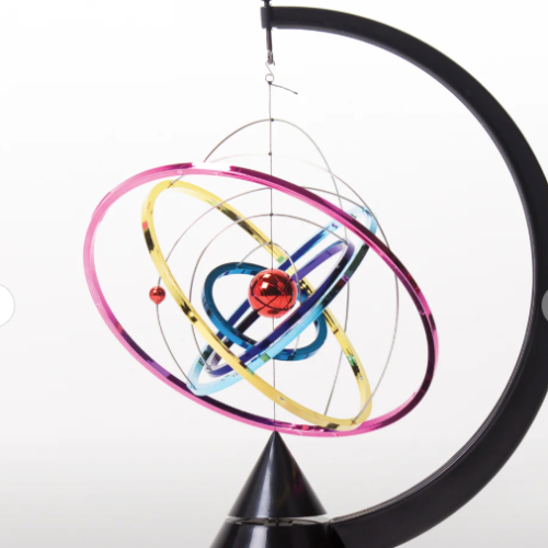 The colourful rings of this imposing, desk-top mobile spin and twirl gracefully around a central sphere. The motion is continuous and, at first glance, impossible to fathom. The secret lies in the base; a battery-powered motor spins a powerful magnet, which in turn exerts a force on the weight suspended from the rings. Even when you know exactly how it works, the perpetual, rhythmic movement and gravity-defying structure still fascinate. Packed with retro geek-appeal, this is an excellent curiosity gift line for adults.