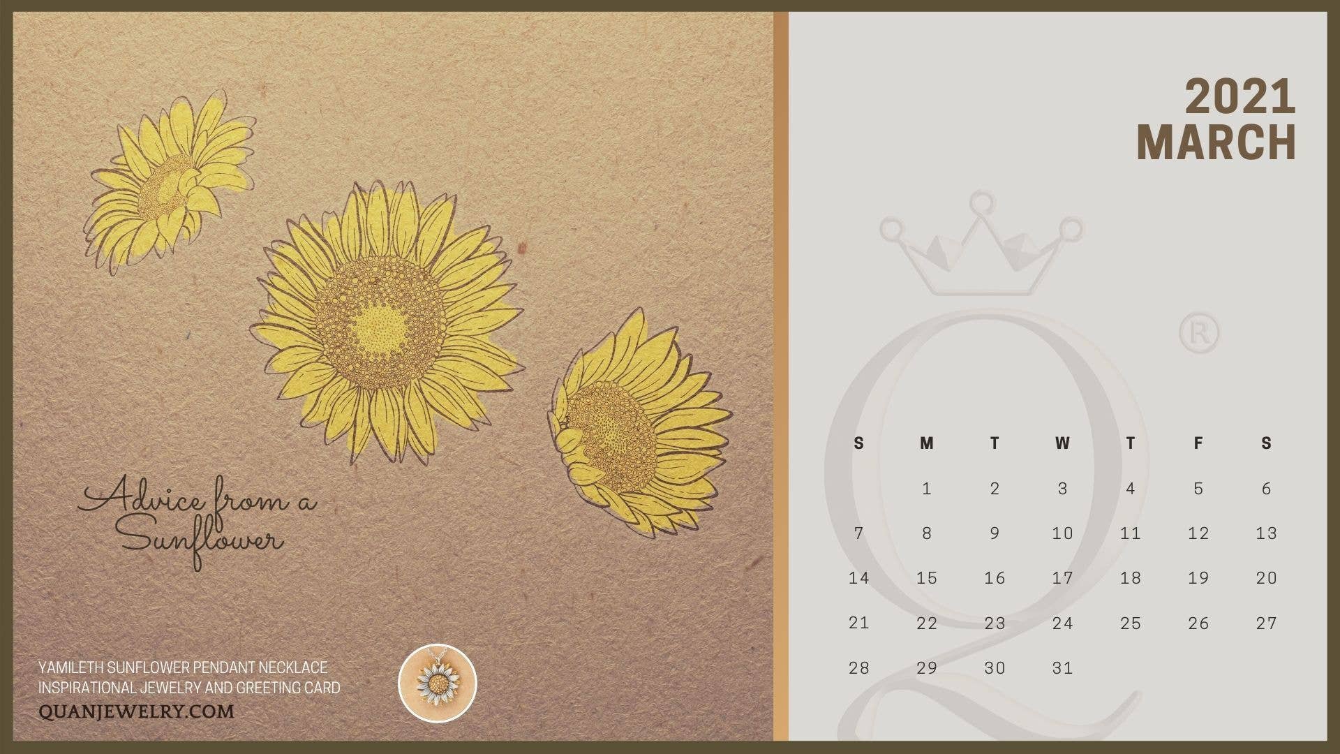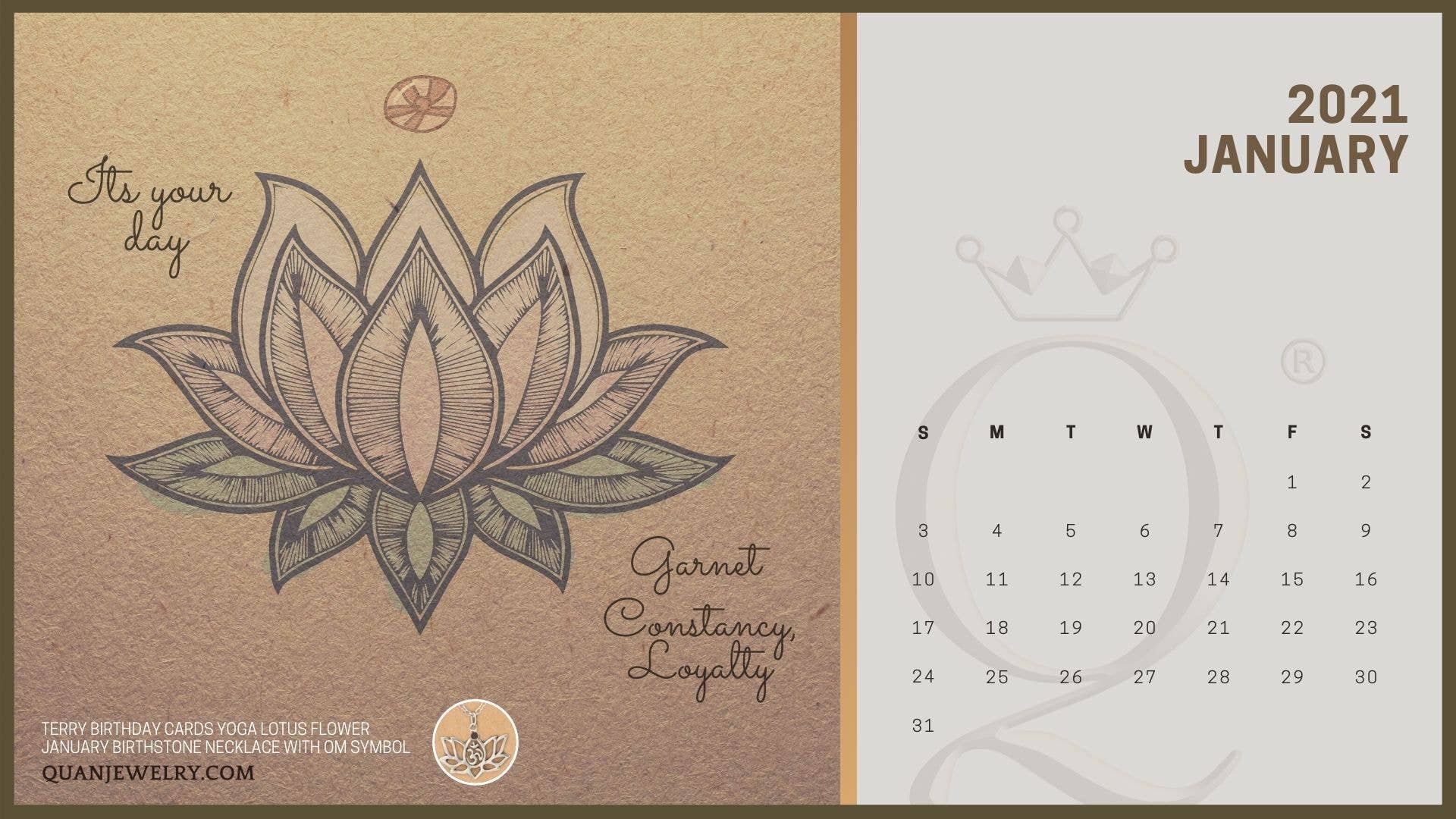 Quan Jewelry has just created a chic, earth-themed calendar just for you! You can start marking all the important dates for your future plans. Plus we’ve included life-teaching quotes from our best-seller jewelry cards to keep you inspired. So download, print and enjoy your 2021 calendar!