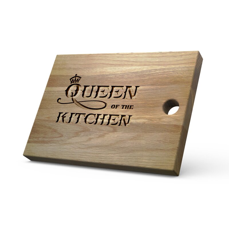 “Queen of the Kitchen” Carved Oak Chopping and Serving Board Landscape Large