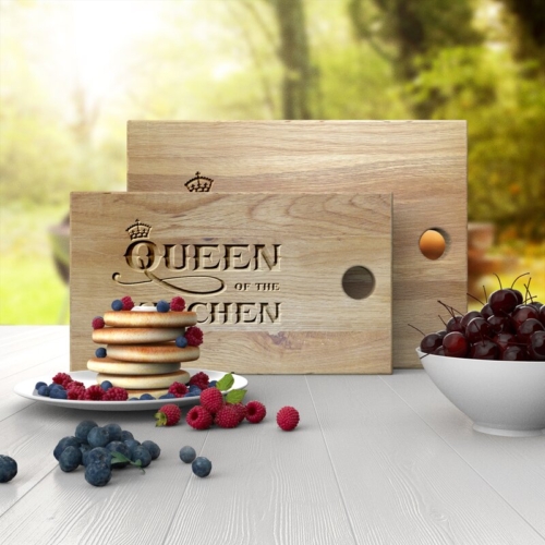 “Queen of the Kitchen” Carved Oak Chopping and Serving Board Landscape Medium