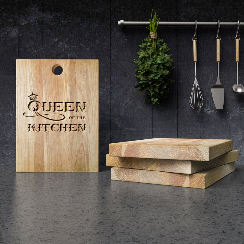 Our range of messaged dual purpose chopping and serving boards add that personal touch to the kitchen and table. Choose from our range of laser etched designs or, for a truly luxurious look, invest in one of our carved designs. Before leaving our workshop, each board is treated with food safe mineral oil to condition and protect the wood. The circular hole makes it easier to lift these robust boards. Please note that as oak is a natural material each board will have its own unique characteristics.