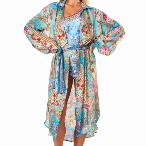 True Colors by La Moda Easy Shirtdress Cover-Up Queens Garden Easy Shirtdress Cover-Up With A Collar, Patch Pockets, And Button Front. This animal floral mix Cover-Up is a essential tunic perfect to wear over your swimsuit. This is the ultimate vacation tunic as it has so many end uses. Ths shirtdress coverup also has matching swimwear to make head turns on your next tropical vacation. Elevate your seashore style in this stunning top from our True Colors Beach collection 100% Viscose Silk Pack of 4 Pcs