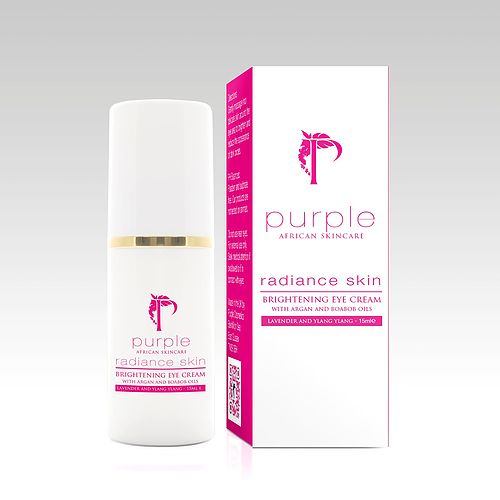 Radiance Skin Brightening Eye Cream with Argan and Boabob Oils, Lavender and Ylang Ylang. To tone and refresh the skin around the eyes to reduce the appearance of dark circles. Fruit extracts, PH Balanced, Paraben and Sulphate free. 15m