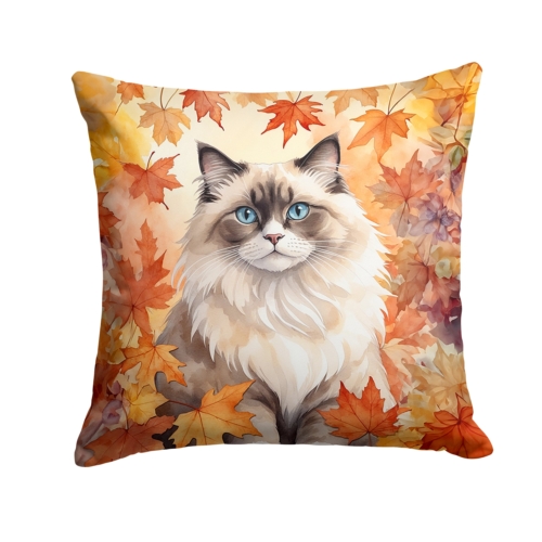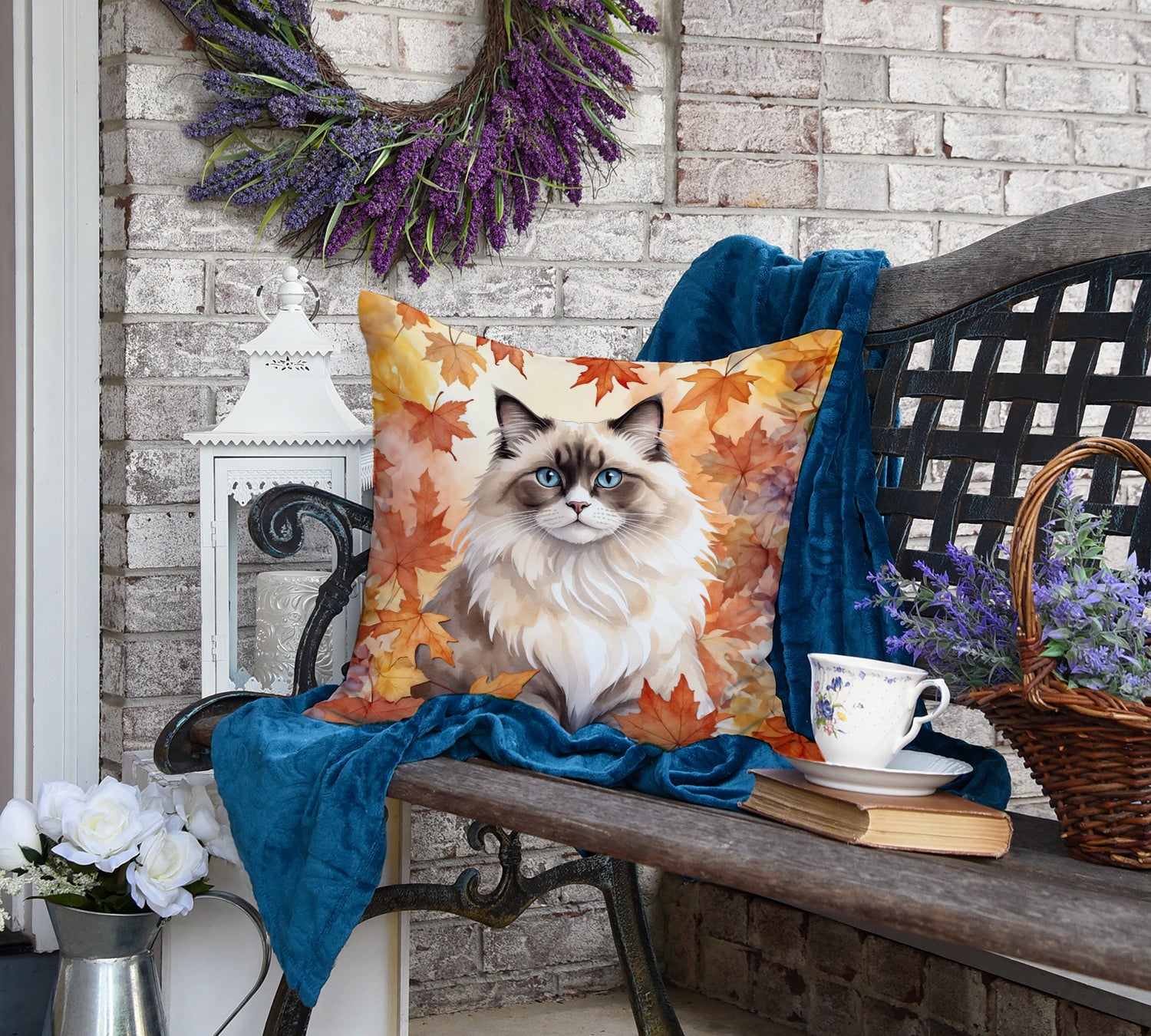 Ragdoll Cat in Fall Leaves Throw Pillow