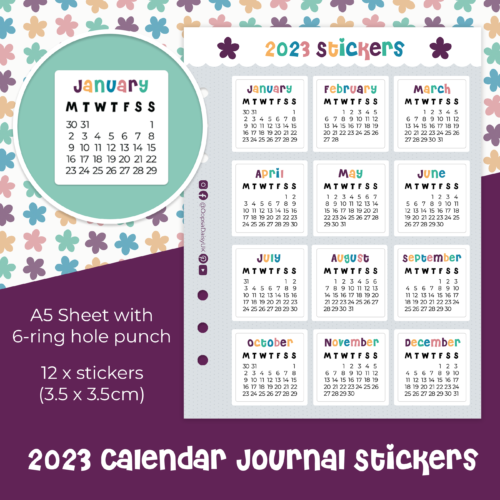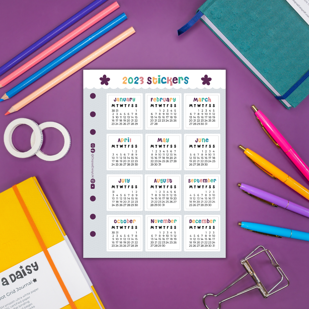 Our 2023 calendar stickers help you quickly and easily add a monthly overview to any journal spread or future log.