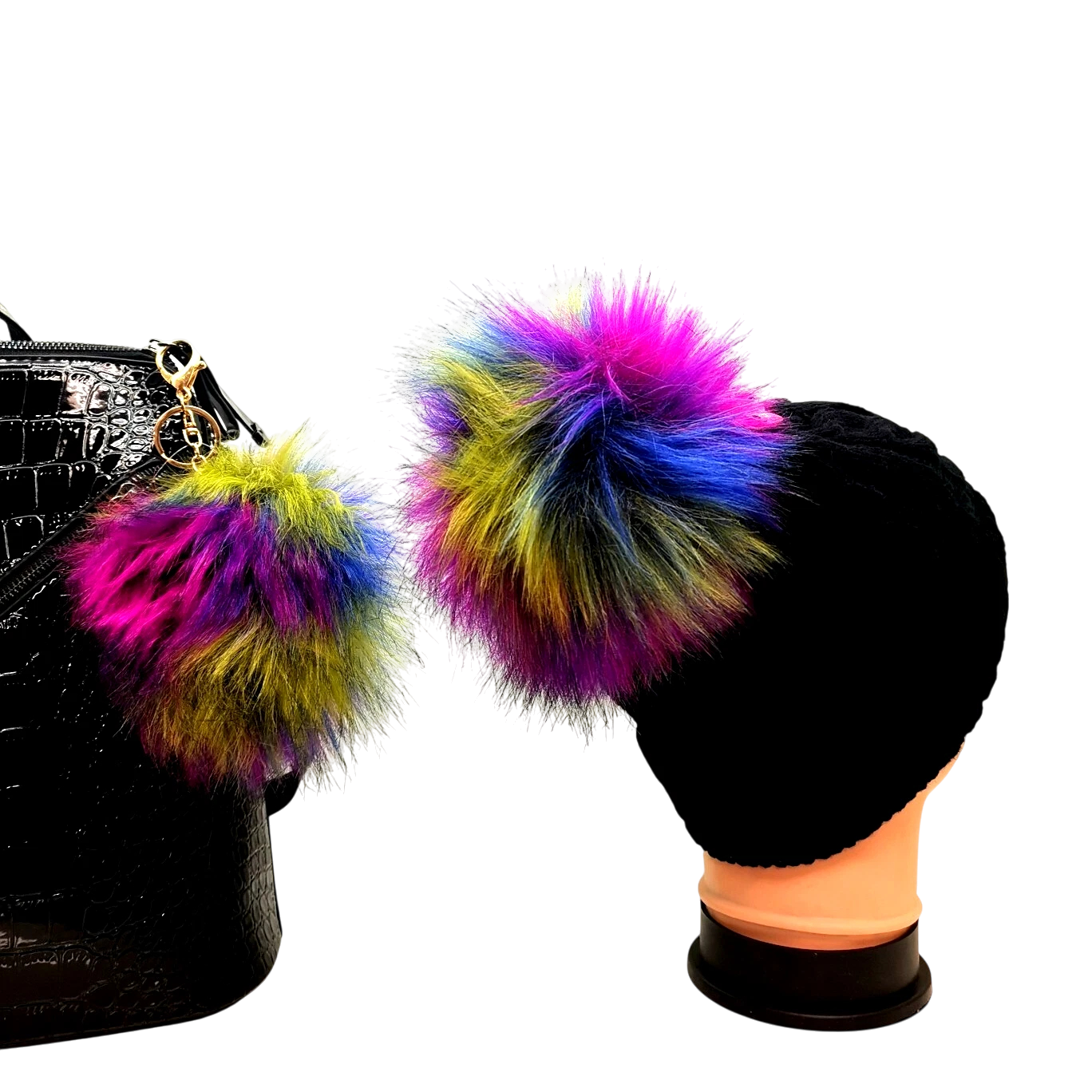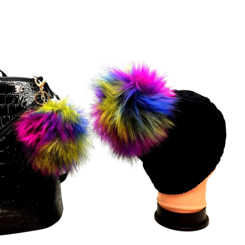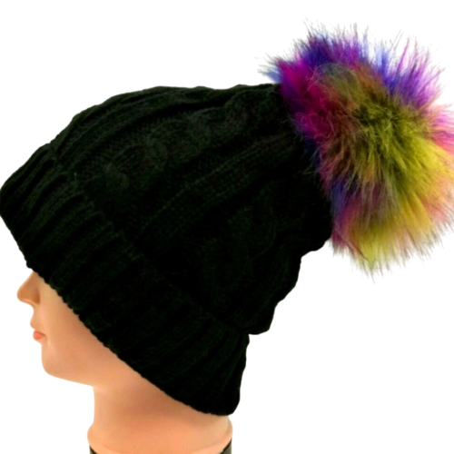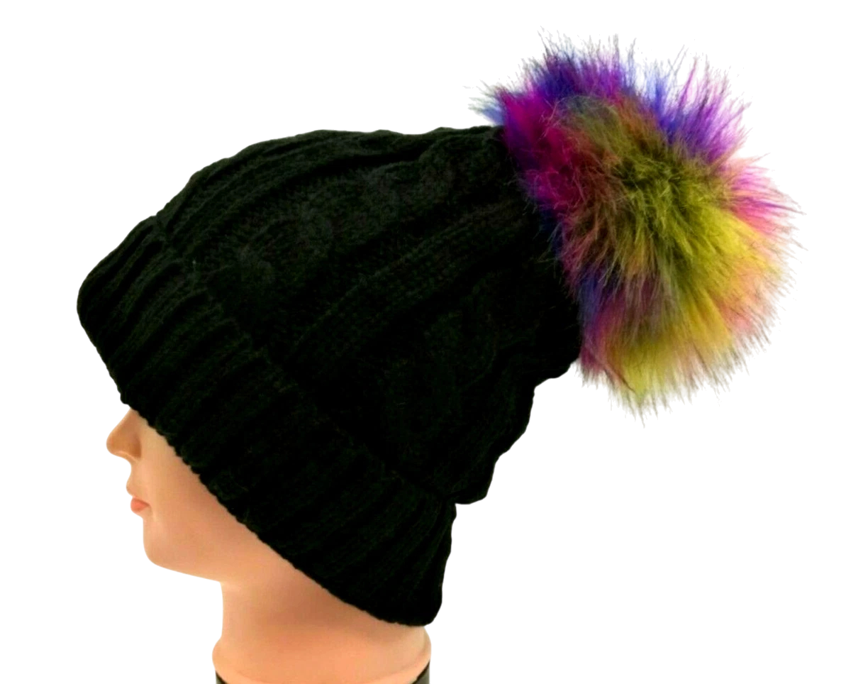 Rainbow Colour Pom Pom Faux Fur Hat + Big Pom pom