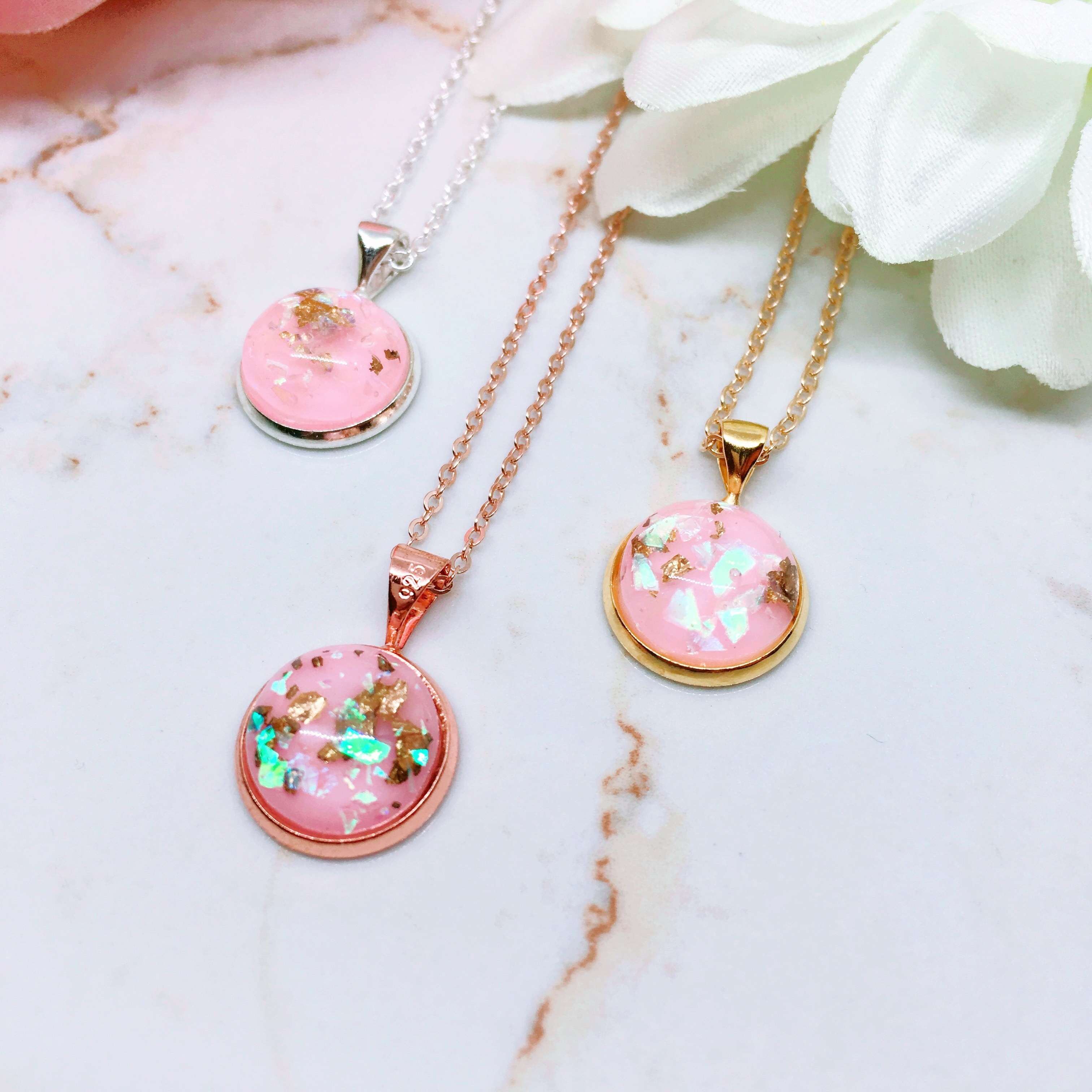 The gorgeous little resin domes are filled with real gold leaf flakes and iridescent shards that catch the light and sparkle in the most amazing way and come in a huge range of colours.