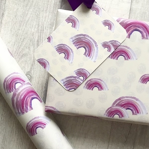 Rainbow gift tag Each tag is made from 300gsm card which is Acid free and Lignin free, the size of the tag is 6.5cm x 10cm roughly (as its handmade), it is non coated so easy to write on. The ribbon is dependent on what I have available at the time, but will colour match the tag