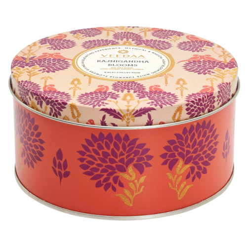 The uniquely designed metallic tin which is a timeless beauty can also be recycled as an accessory to store trinkets, jewelry or accessories long after the candle is gone. On the first burn ensure hot melted wax pool reaches edge of container before extinguishing wicks. Make sure to trim wicks to 1/4 inch before each relighting. Keep out of reach of children and pets.
