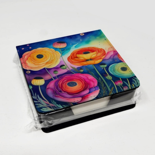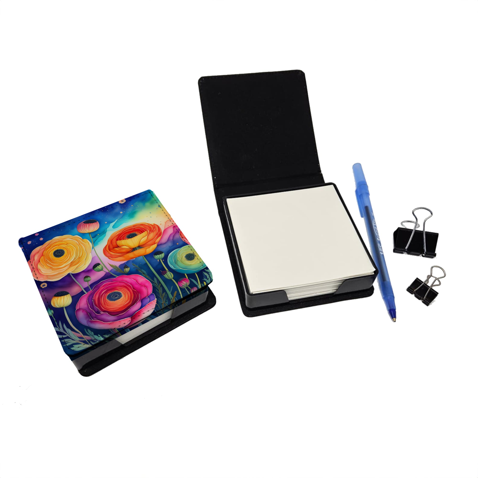 PU Leather Note Paper Holder featuring breed specific Ranunculus artwork. Elevate your workspace with this PU Leather Note Paper Holder, crafted to resemble luxurious leather without the use of animal products. Made from durable synthetic PU leather, it offers both a premium look and eco-friendly appeal. This note holder, compactly sized at 4.25 x 4.25 x 1.25 inches, includes about 160 sheets of 3.75 x 3.75-inch note paper—ideal for quick notes and reminders. An exclusive artist-designed cover makes each holder uniquely vibrant, adding a splash of color and personality to any desk or office. The discrete design keeps note paper hidden, maintaining a neat and organized workspace. Perfect as a gift or for personal use, this stylish holder is refillable with standard paper, ensuring long-lasting utility. A must-have for anyone seeking a sophisticated, artful touch to their workspace while supporting animal-friendly products. Add style, organization, and creativity to your everyday routine with this elegant note paper holder.