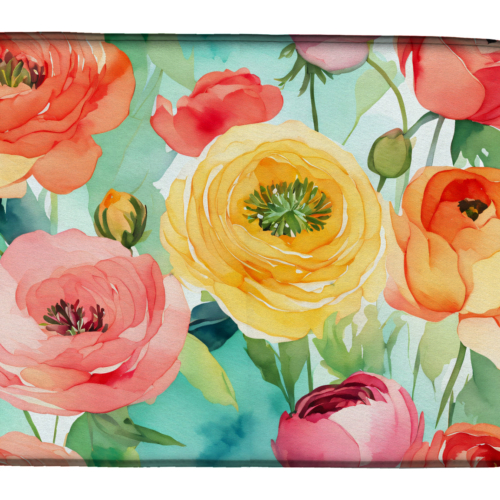 Dish Drying Mat featuring breed specific Ranunculus artwork. Say goodbye to messy countertops and soggy dish towels with our innovative dish drying mat. Our high-quality dish drying pad is designed to keep your countertops dry while offering a stylish and efficient solution. Whether you’re air drying dishes, glasses, stemware, silverware, pots, pans, bottles, or even fruits and vegetables, our dish mat is the perfect choice. The 14 inches x 22 inches size fits most counters and dish drying racks, and the non-slip design ensures stability. Made with water-absorbent polyester and a polyurethane foam insert, our dish drying mat is not only functional but also durable. It’s machine washable and printed in the USA for long-lasting use. The beautiful artwork adds flair to your kitchen decor, making it a perfect housewarming gift or present for any occasion. Upgrade your kitchen experience with our absorbent and versatile dish drying mat.
