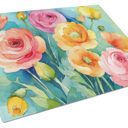 Glass Cutting Board featuring breed specific Ranunculus artwork. Introduce your kitchen to the vibrant, large Decorative Glass Cutting Board from Caroline’s Treasures. Crafted from resilient tempered glass, this board is not only a utilitarian necessity but also a colorful art piece. With its generous dimensions of 15 inches in height and 12 inches in length, it offers ample space for all your cutting needs. Every piece showcases captivating artwork from distinguished artists, bringing an aesthetic edge to your kitchen. Beyond its attractive design, this cutting board ensures your countertop stays pristine and unscathed, owing to its heat-resistant properties. Engineered with user convenience in mind, it features non-skid feet for stability, and rounded corners for additional safety. Its robust construction renders it virtually unbreakable, guaranteeing longevity. The board comes with protective feet bumpers, maintaining its position during use. This product is recommended to be hand washed only. Proudly printed and assembled in the United States, this cutting board exemplifies superior craftsmanship. With Caroline’s Treasures’ Decorative Glass Cutting Board, you’re investing in a blend of functionality and artistic flair.