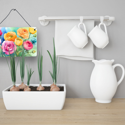 Wall or Door Hanging Prints featuring breed specific Ranunculus artwork. Add a splash of color and artistic flair to any indoor or outdoor space with our Aluminum Artwork Prints. These unique prints, featuring full-color, multicolor designs, provide a versatile decorative touch that can enhance a kitchen, bathroom, office, outdoor patio, or even the front door area. Each print measures 8 inches by 12 inches, making it the perfect size to catch the eye without overwhelming your space. Constructed with durability in mind, these prints can be placed outdoors and withstand direct sunlight for a significant amount of time before any fading begins. Designed for easy installation, each print features a black hanging rope and has a lightweight profile. This allows for quick hanging with just about any nail or screw. For safety and aesthetic appeal, the print’s corners are gently rounded. The back of the print showcases a brushed silver color for an added touch of elegance. Rust and fade-resistant, these Aluminum Artwork Prints are not only beautiful but are also built to last. Elevate your space with these stunning prints, crafted with care and artistic passion.