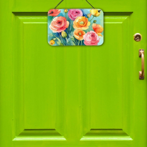 Wall or Door Hanging Prints featuring breed specific Ranunculus artwork. Add a splash of color and artistic flair to any indoor or outdoor space with our Aluminum Artwork Prints. These unique prints, featuring full-color, multicolor designs, provide a versatile decorative touch that can enhance a kitchen, bathroom, office, outdoor patio, or even the front door area. Each print measures 8 inches by 12 inches, making it the perfect size to catch the eye without overwhelming your space. Constructed with durability in mind, these prints can be placed outdoors and withstand direct sunlight for a significant amount of time before any fading begins. Designed for easy installation, each print features a black hanging rope and has a lightweight profile. This allows for quick hanging with just about any nail or screw. For safety and aesthetic appeal, the print’s corners are gently rounded. The back of the print showcases a brushed silver color for an added touch of elegance. Rust and fade-resistant, these Aluminum Artwork Prints are not only beautiful but are also built to last. Elevate your space with these stunning prints, crafted with care and artistic passion.