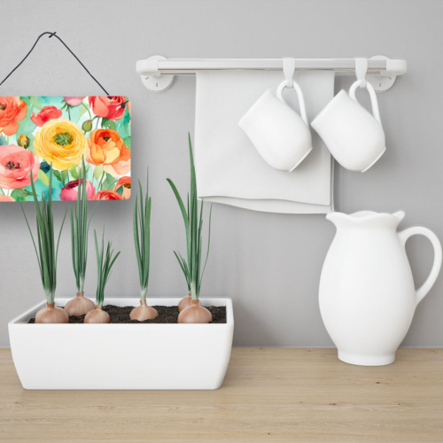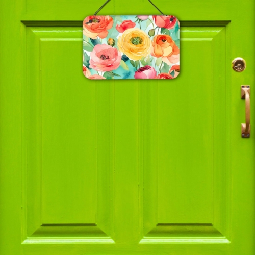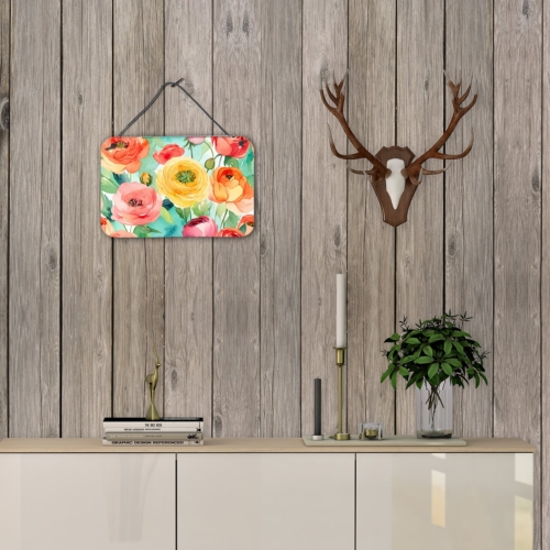 Wall or Door Hanging Prints featuring breed specific Ranunculus artwork. Add a splash of color and artistic flair to any indoor or outdoor space with our Aluminum Artwork Prints. These unique prints, featuring full-color, multicolor designs, provide a versatile decorative touch that can enhance a kitchen, bathroom, office, outdoor patio, or even the front door area. Each print measures 8 inches by 12 inches, making it the perfect size to catch the eye without overwhelming your space. Constructed with durability in mind, these prints can be placed outdoors and withstand direct sunlight for a significant amount of time before any fading begins. Designed for easy installation, each print features a black hanging rope and has a lightweight profile. This allows for quick hanging with just about any nail or screw. For safety and aesthetic appeal, the print’s corners are gently rounded. The back of the print showcases a brushed silver color for an added touch of elegance. Rust and fade-resistant, these Aluminum Artwork Prints are not only beautiful but are also built to last. Elevate your space with these stunning prints, crafted with care and artistic passion.