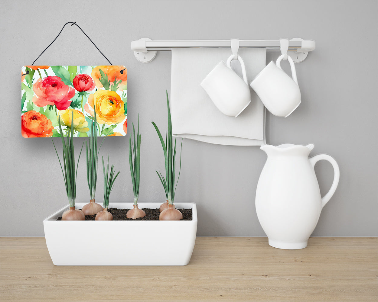 Wall or Door Hanging Prints featuring breed specific Ranunculus artwork. Add a splash of color and artistic flair to any indoor or outdoor space with our Aluminum Artwork Prints. These unique prints, featuring full-color, multicolor designs, provide a versatile decorative touch that can enhance a kitchen, bathroom, office, outdoor patio, or even the front door area. Each print measures 8 inches by 12 inches, making it the perfect size to catch the eye without overwhelming your space. Constructed with durability in mind, these prints can be placed outdoors and withstand direct sunlight for a significant amount of time before any fading begins. Designed for easy installation, each print features a black hanging rope and has a lightweight profile. This allows for quick hanging with just about any nail or screw. For safety and aesthetic appeal, the print’s corners are gently rounded. The back of the print showcases a brushed silver color for an added touch of elegance. Rust and fade-resistant, these Aluminum Artwork Prints are not only beautiful but are also built to last. Elevate your space with these stunning prints, crafted with care and artistic passion.