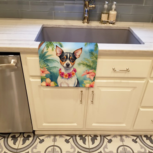 Kitchen Towel featuring breed specific Rat Terrier artwork. Experience the perfect blend of aesthetic appeal and functional excellence with our Plush Velour Kitchen Towels. These are not your ordinary decorative kitchen towels that gather dust. Instead, they are designed to be as practical as they are stylish. The front layer of our towel is constructed from a minky plush polyester, known for its durability and color retention. Unlike conventional kitchen towels, the artwork on our towels is dyed directly into the fabric, ensuring vibrant colors that last. Polish your glassware to a brilliant sparkle using the plush front side of the towel. Flip to the back, crafted from 100% cotton terry loop, to exploit its exceptional absorbency for drying dishes or wiping down counters. Our kitchen towels redefine the concept of functional art, offering lasting quality that maintains the towel’s shape over time. Measuring 15 inches by 25 inches and weighing 2.3 lbs per dozen, these towels deliver an overwhelming sensory experience with their soft, plush, and smooth texture. The edges are meticulously finished with binding, enhancing their durability and visual appeal. For your convenience, these towels are machine washable and can be dried on low heat. After the first wash, the top fabric becomes even softer and fluffier, eliminating the need for ironing. Treat your kitchen to the luxury and functionality it deserves with our plush velour kitchen towels.