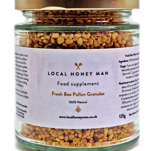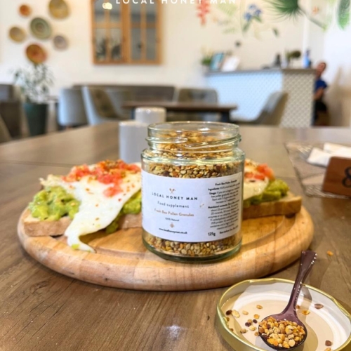 Bee pollen is a nutritious superfood believed to contain more protein than any other animal product. To be precise, this small but powerful substance has A, C, D, E, K and all the B’s plus amino acids, omega 3 oils, folic acid and antioxidants. You can sprinkle these bee grains over breakfast bowls, dessert or dinner. It’s extremely rich in carotenes and high in B-complex, vitamins and Lecithin. Boost your energy and vitality with our pure, raw bee pollen! This natural wonder is packed with nutrients and can be enjoyed in a variety of ways. How to Enjoy Bee Pollen Our favourite way to consume bee pollen is to mix a teaspoon into one of our delicious raw, or infused honeys – a perfect blend of sweetness to start your day. You can also: – Dilute it in warm water or hot tea- Sprinkle it on your breakfast cereal-Sprinkle over natural yogurt for gut health benefit-Sprinkle over Salads for an immune system boost- Eat it neat, from a spoon, just like any other food! Suggested Dosage – Adults: Start with ½ teaspoon about 30 minutes before your first meal of the day. Gradually increase your intake by a few grains per day over the course of a week until you reach a full teaspoon, 1-2 times per day (5-10 ml).- Children: Begin with 2-3 grains each morning, increasing by a grain per day until reaching ½ teaspoon. Tips: Listen to your body and adjust your dosage accordingly. Enjoy the natural goodness of bee pollen and experience the benefits for yourself!