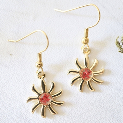 These earrings are handmade with real pressed flowers encased in resin. They are like wearing a piece of nature. Ear hooks are nickel free zinc alloy, great for sensitive ears.