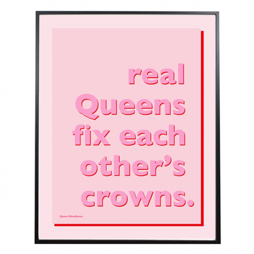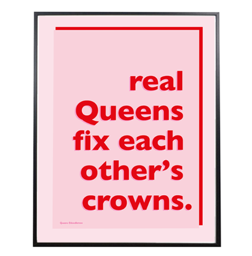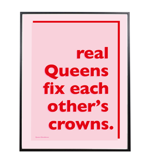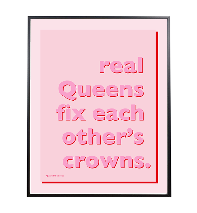 ‘Real QUEENS fix eachother’s crowns’ typographic print for International women’s day, reminds us that women supporting women can achieve incredible things. Perfect for a present for that special friend that has your back! or to yourself for an everyday reminder of how great it’s to be a woman. Perfect for any room in the home.