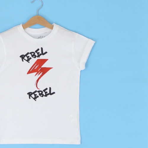 ‘REBEL REBEL’ COOL KIDS SLOGAN T-SHIRT