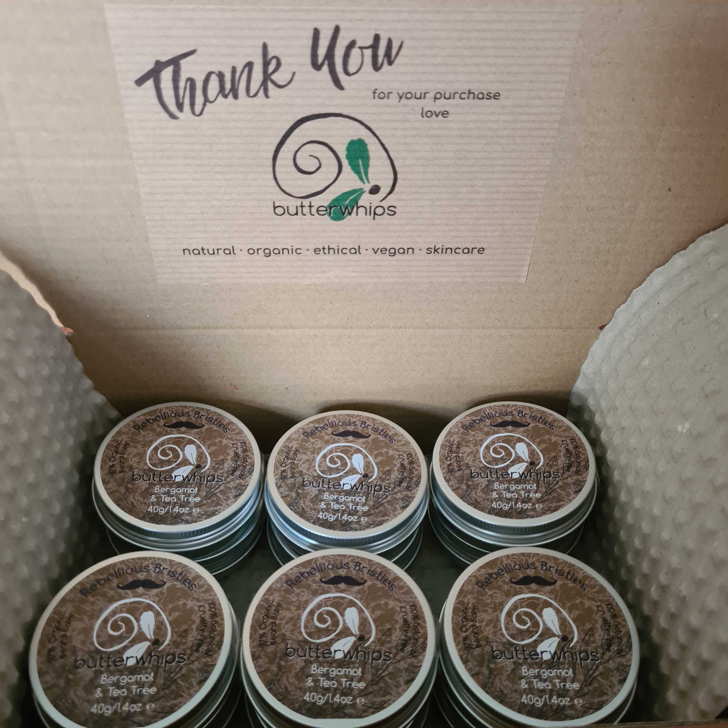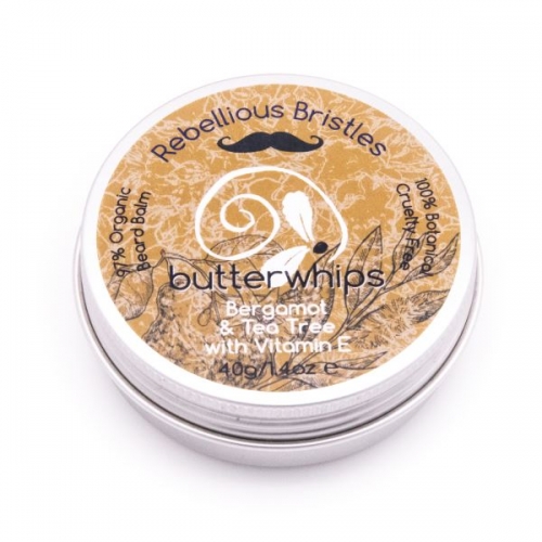Our Rebellious Bristles Beard Balm is citrus scented, ideal for softening the beard, reducing breakage and moisturising the face and neck. The nourishing shea and pressed oils infused with antibacterial Tea Tree and anti inflammatory properties of Bergamot will keep your beard fresh, prevent razor bumps and itchiness and sooth dry thirsty skin.