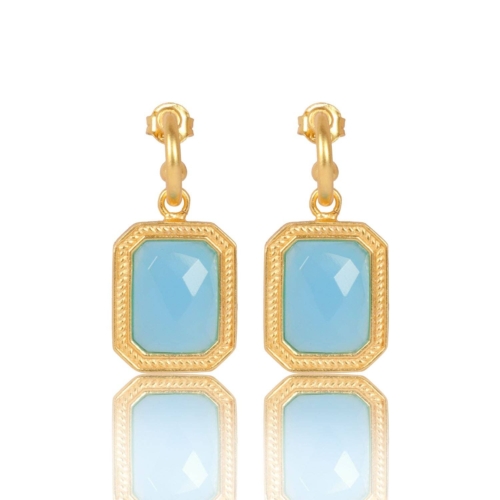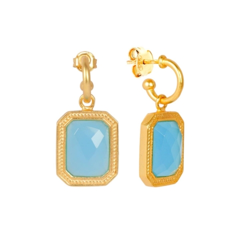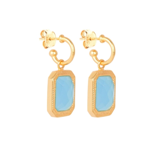 Inspired by the clear turquoise waters of the tropics, these Rectangular Bahamian Blue Crystal Hoops bring a vibrant splash of colour to your jewellery collection. They will enhance your look with their playful yet refined design, perfect for brightening both casual and formal occasions.