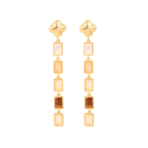 Rectangular Earthy Tone Drop Clover Stud Earring