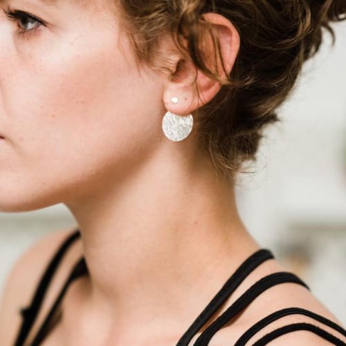 Unusual modern studs with an attachable ear jacket meaning you can style these earrings multiple ways! Wear with the jacket in front or behind the lobe, wear the studs on their own or even mix and match with other studs. Handmade from eco silver. Jacket measures approximately 2x2cm with the studs being approximately 4mm. Posted to you in a branded card box perfect for gifting.