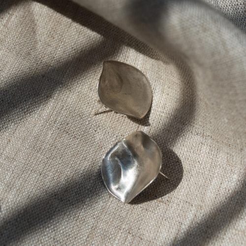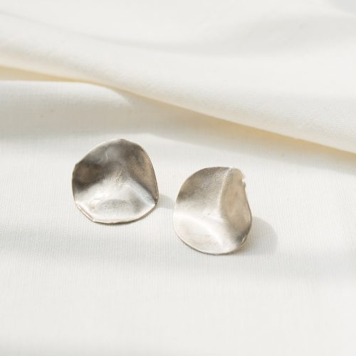 Melted silver disc studs that form wobbly shapes during the making process. Each pair is different and completely unique to you!