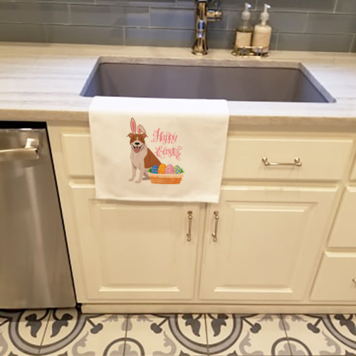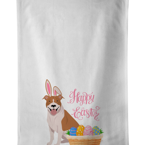 Red and White Pit Bull Terrier Easter Kitchen Towel Set of 2