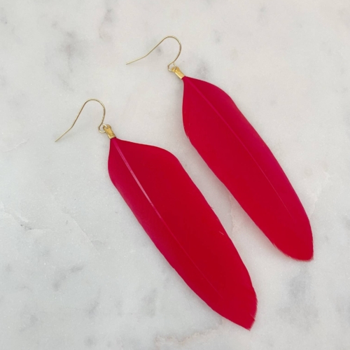 Gorgeous, natural feather earrings. Each pair is unique. I try to best match feathers. These are gorgeous and one of our favorites! Measures approx 2-2.5″.