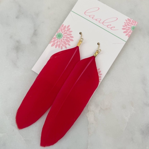 Gorgeous, natural feather earrings. Each pair is unique. I try to best match feathers. These are gorgeous and one of our favorites! Measures approx 2-2.5″.