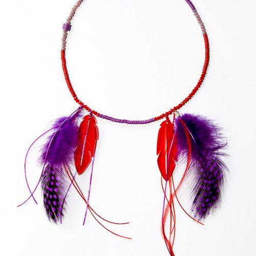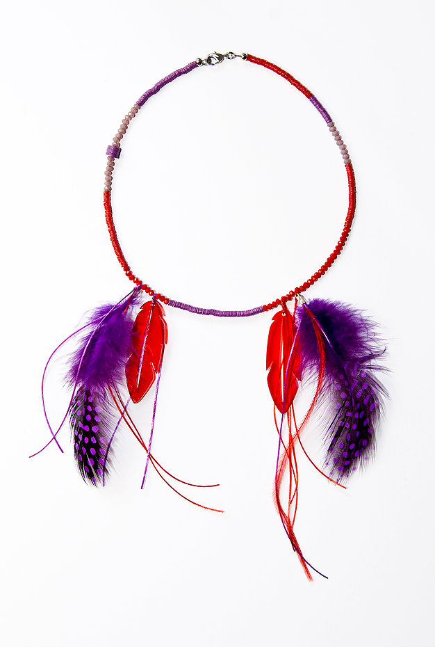 Red Purple Feather Necklace