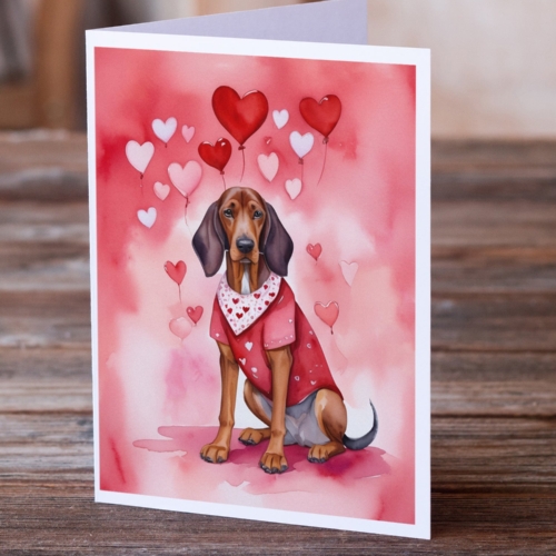Greeting Cards Pack of 8 featuring breed specific Redbone Coonhound artwork. Celebrate Valentine’s Day with this Valentine’s Day . Celebrate special moments with Caroline’s Treasures Printed Greeting Card Pack. This pack includes eight beautifully folded 5×7 cards, accompanied by eight matching white envelopes. With blank interiors, these cards provide ample space for your personalized messages and heartfelt holiday greetings. Each card features captivating full-color artwork, meticulously printed in our facility on high-quality 80 lb cover stock or 216 GSM. The super smooth finish of the white cards enhances the visual impact of the artwork, creating a truly stunning presentation. Designed by our talented in-house artists or licensed artists, the artwork on these cards showcases their creativity and attention to detail. From vibrant illustrations to captivating designs, each card tells its own unique story. Whether it’s for birthdays, anniversaries, holidays, or any special occasion, Caroline’s Treasures Greeting Card Pack is the perfect way to convey your heartfelt sentiments. Share joy, love, and warm wishes with these exquisite cards and make every moment unforgettable.
