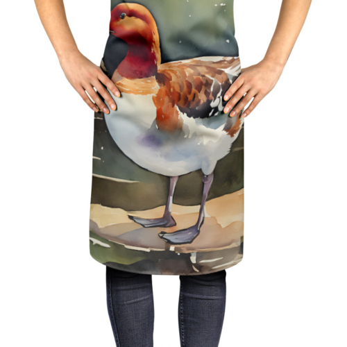 Apron featuring breed specific Redhead Duck artwork. Elevate your cooking, baking, and grilling experiences with our versatile Kitchen or BBQ Apron. This Bib Style apron isn’t just limited to culinary activities – it also serves as an excellent baking apron, artist apron, server apron, gardening apron, or even a dog grooming apron. The apron showcases vibrant full-color artwork contributed by one of our talented artists, bringing a dash of style to your daily tasks. With dimensions of approximately 27″W x 30″H, it provides ample coverage to protect your clothing from spills and splashes. Our apron is meticulously crafted from 100% Ultra Spun Polyester, known for its durability and lightweight nature. The apron comes with white tie straps, ensuring a comfortable and adjustable fit for all. It’s a perfect choice for kitchen apron enthusiasts, whether you are a woman or a man. Designed for easy maintenance, this apron is fully machine washable. The quick-drying polyester material actively reduces staining, keeping your apron looking fresh and new for longer. Our beautifully designed apron isn’t just a functional kitchen accessory – it’s a fashion statement in the culinary world!